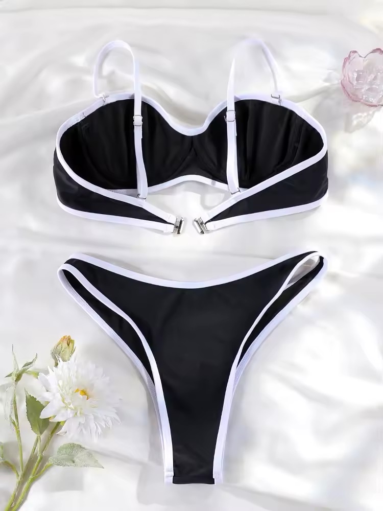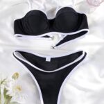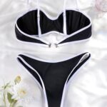 Стильний роздільний купальник із гладкою поверхнею та яскравим поєднанням двох кольорів — чудовий вибір для літнього відпочинку. Він підкреслює вашу фігуру та надає елегантності на пляжі чи біля басейну.